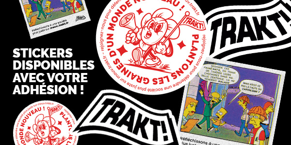 Adhérez ou faites un don : Grâce à vos cotisations ou vos dons, nous pouvons développer nos actions comme par exemple améliorer et diffuser plus largement notre fanzine, organiser des débats ou des expositions… Bref vous permettez à Trakt! de vivre et de pouvoir porter haut et fort notre message.